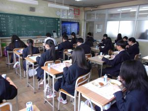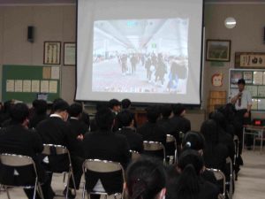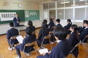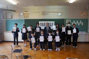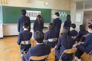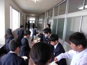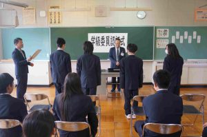 また、放課後の中庭では、2人の生徒が花に水をやっていました。人権委員会の仕事とのことです。こちらも心温まる光景でした。ありがとう。さらに、帰りの会の後、日直の仕事で教室の掃除をしていた生徒が、私に気づき、「校長先生、こんにちは!」と声をかけてくれました。