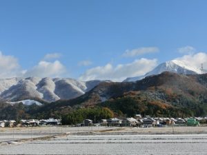 とうとう平地にも雪が積もりました。思ったよりは少なくてよかったのですが、夏があれだけ暑くても雪は降るのですね。校舎から見える伊吹山も近くの山々も田んぼも白くなりました。