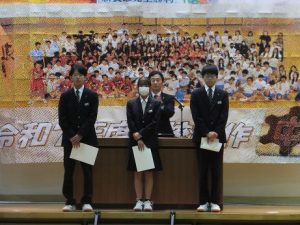 受賞された皆さん、おめでとうございます。新生徒会の会長、副会長さん、これから頑張ってください。