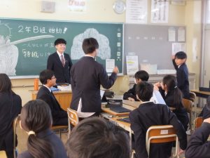 2年生は、学級活動で係や掃除分担など、学級組織を決めました。中学校生活も2年目なので、スムーズに決まっていきました。