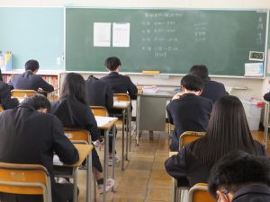 3年生は、1校時から4校時までテストでした。みんな真剣に問題に取り組んでいました。チャイムが鳴る3分前に全員が席に着き、テストが配られるのを静かに待っていました。3年生、素晴らしいです!