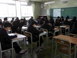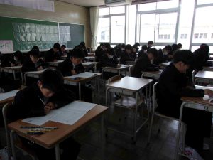 こちらは1年生のテストの様子です。テストにも少しずつ慣れてきたようで、3分前着席もきちんとできていました。
