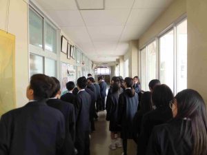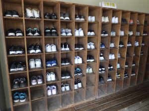 今日は、「はきもの」の状態を見てみました。どの学年も下駄箱に靴が整然と並んでいます。さすが東中生、素晴らしいです。