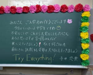 1年生は中学校生活が初めてなので、担任の先生から学校生活についてなど、いろいろな話を聞きました。