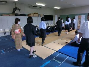 本日より2学期の「茶道教室」が始まりました。引き続き田中先生、吉井先生においでいただき、ご指導をいただきます。今日は1年A組が学習しました。