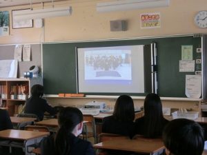 また、5校時には3年生を送る会として、生徒会や部活動、学年ごとに作ったお祝いメッセージを教室で鑑賞しました。それぞれに工夫を凝らしたムービーでとても楽しいものでした。3年間の軌跡を写真で振り返る後半は、これまでの思い出がよみがえり、胸に迫るものがありました。