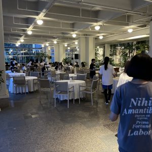 ホテルに到着しました。修学旅行1日目の夕食はビッフェ形式です。リゾート感のある会場で食事をとりました。みんな元気に1日目の日程を終えました。明日はホテルのビーチでマリン体験ですが、天気が心配です。少しでも回復していることを願います。本日の更新はこれで終了します。