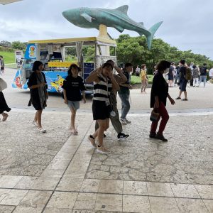 各民家さんが生徒たちと美ら海水族館に来てくださいました。ありがとうございます。この後は、夕食や民家ごとのメニューを楽します。よろしくお願いします。午前中は海での活動もあったので、今日はよく眠れると思います。明日は最終日です。天気が心配ですが、国際通りでの班別自主研修を予定しています。今日の更新はこれで終わりとします。