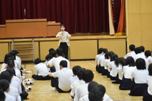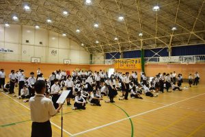39日間の夏休みが終わり、いよいよ2学期がスタートしました。朝の会と掃除の後、久しぶりに全校生徒が体育館に集まりました。