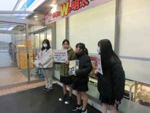 本日も放課後に募金活動を行いました。今日が最終日となりました。この3日間で本当に多くの方から募金をいただきました。被災地の方々への想いはもちろんのこと、活動している中学生にもあたたかい気持ちをいただいたように思います。本当にありがとうございました。