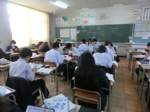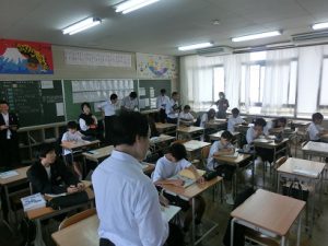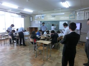 6校時は1年A組で数学の研究授業を行い、東中全教員が参観をしました。