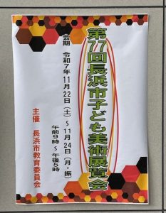 昨日より11月24日(月)まで湖北文化ホールにて「第77回長浜市子ども美術展覧会」が開催されています。開館時間は9時から17時までです。市内の小中学校児童・生徒の力作が展示されています。
