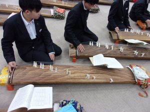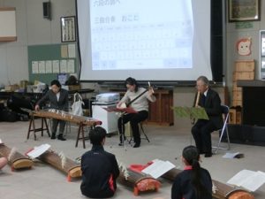 授業内では、先生方による箏、三味線、尺八の三曲合奏を聞かせていただき、心和む時間となりました。