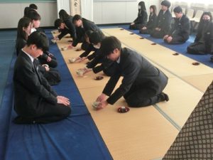 1年生と2年生は来年度も引き続き、茶道教室で「和敬清寂」「一期一会」の心を学び、茶の作法と共に精神も身に付けてもらいたいと思います。