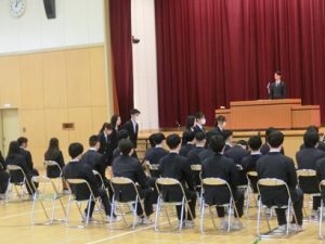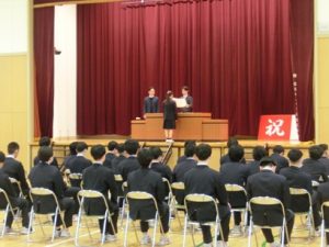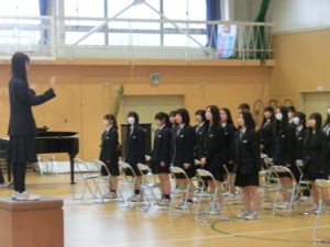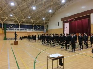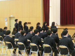 4校時には1、2年生も交えて卒業式の予行を行いました。全校生徒がしっかりとした態度で練習に臨めました。明日の本番もみんなで素晴らしい式にしていきましょう。