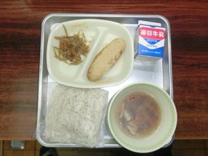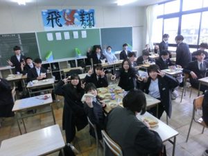 また、3年生は義務教育最後の給食でした。9年間いただいてきた給食ともお別れです。これまでお世話いただいた給食センターの皆さんに感謝したいと思います。