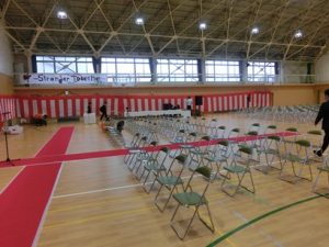1,2年生は午後から明日の卒業式に向けて、式場準備や掃除などを頑張ってくれました。ありがとう。