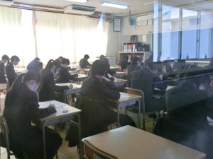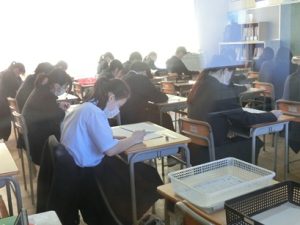 1,2年生は今日、明日の2日間で「学年末テスト」を行います。卒業式が早くなった関係で、今年度はこの時期に行います。