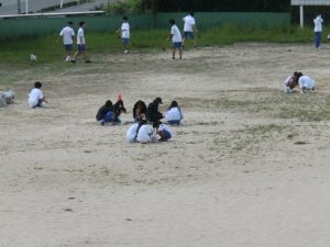 来週の体育大会に向けて、今日は各学年1時間ずつ「除草作業」を行いました。