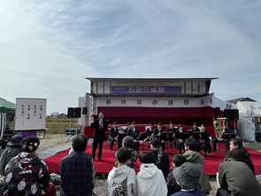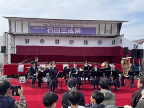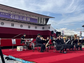 本日、吹奏楽部は「石田三成祭」に招かれ、会場のステージで演奏を披露しました。地元以外からも大勢の方が訪れる大きなイベントで、先日の「東風祭」に引き続き、楽しいパフォーマンスを織り交ぜながらの演奏でした。