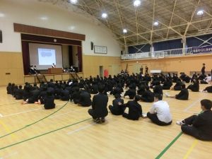 本日、5校時に「第80期生徒会正副会長選挙」が実施されました。吉居生徒会長のあいさつの後、応援演説と各候補者からの立候補演説が行われました。今回の選挙では、生徒会長候補2名、副生徒会長候補3名が立候補し、各者演説の後、投票が行われました。どの候補者もしっかりとした声で、これからの東中をさらに良くしていこうという思いが感じられる、素晴らしい演説内容となりました。