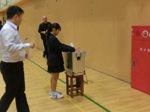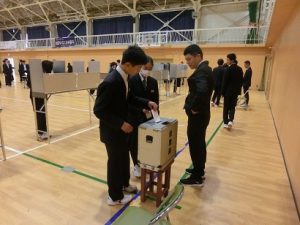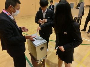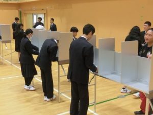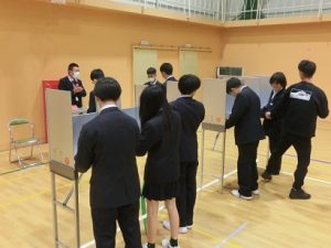 演説会後の投票では、市役所からお借りした実際の選挙で使用する投票箱に投票しました。