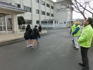 凍てつく寒さの中、本日、早朝より北郷里民生児童委員の皆さん8名が昇降口前と自転車小屋付近で「あいさつ運動」を行ってくださいました。今年度は最後となります。