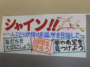 新しい仲間や先生たちと一緒に、「笑顔あふれる 挑戦できる学校」を作っていきましょう。