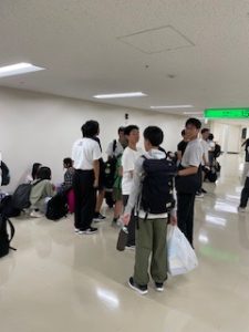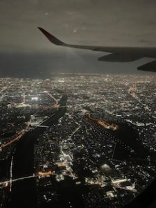 伊丹空港に到着しました。20:30に出発し、学校には22:20頃の到着を予定しています。