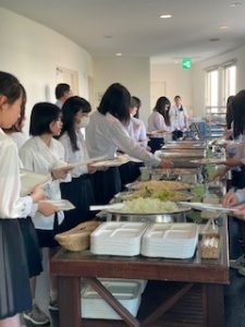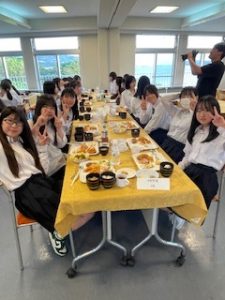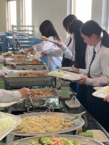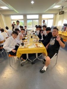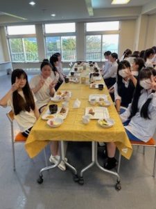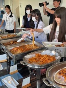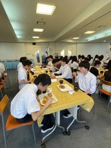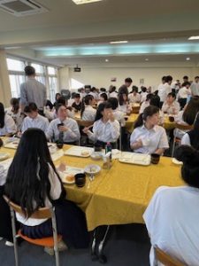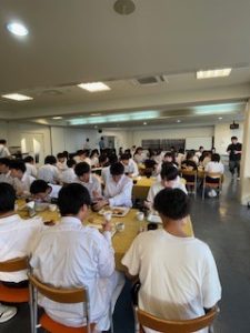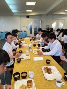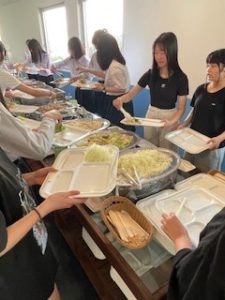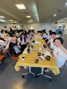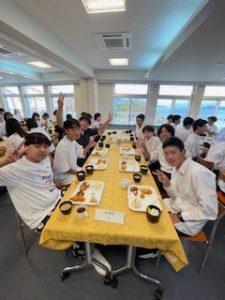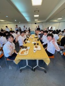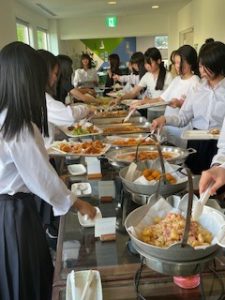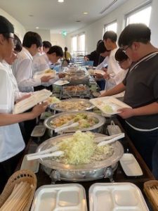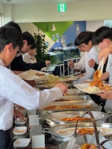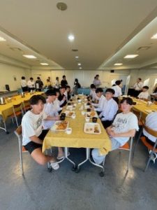 ホテルに着いて、少し休憩したあと、お待ちかねの夕食です。バイキング形式で、子どもたちは自分の好きな料理をとって食べています。みんな元気に過ごしています。笑顔と笑いいっぱいの楽しいひとときです。